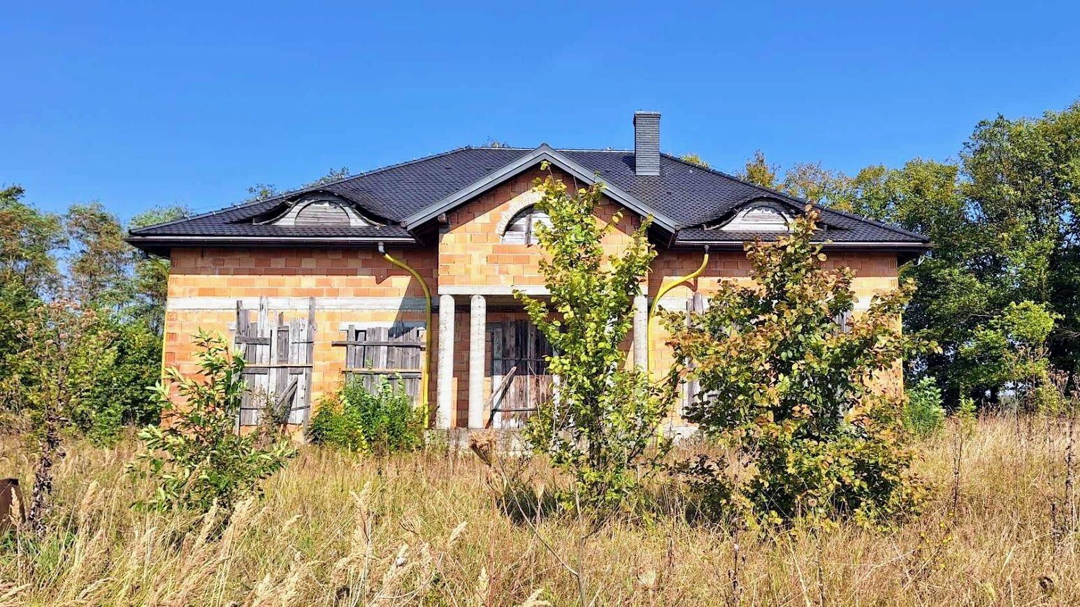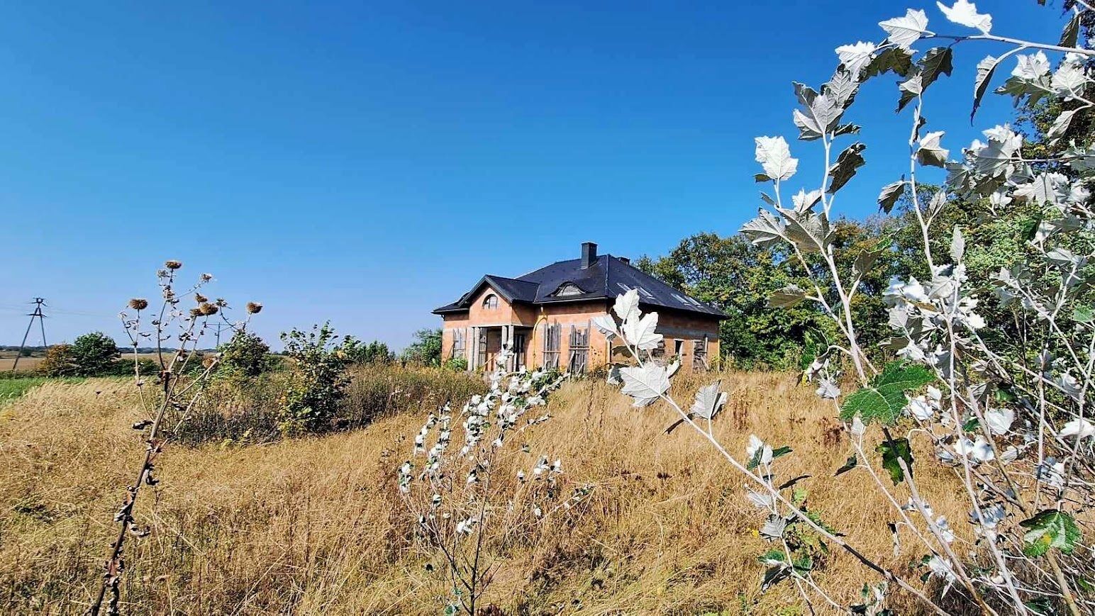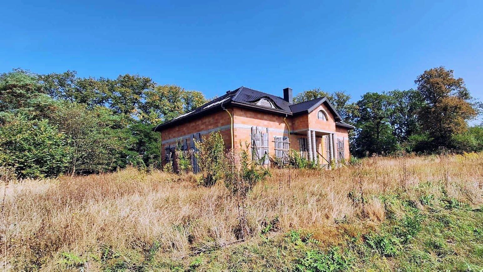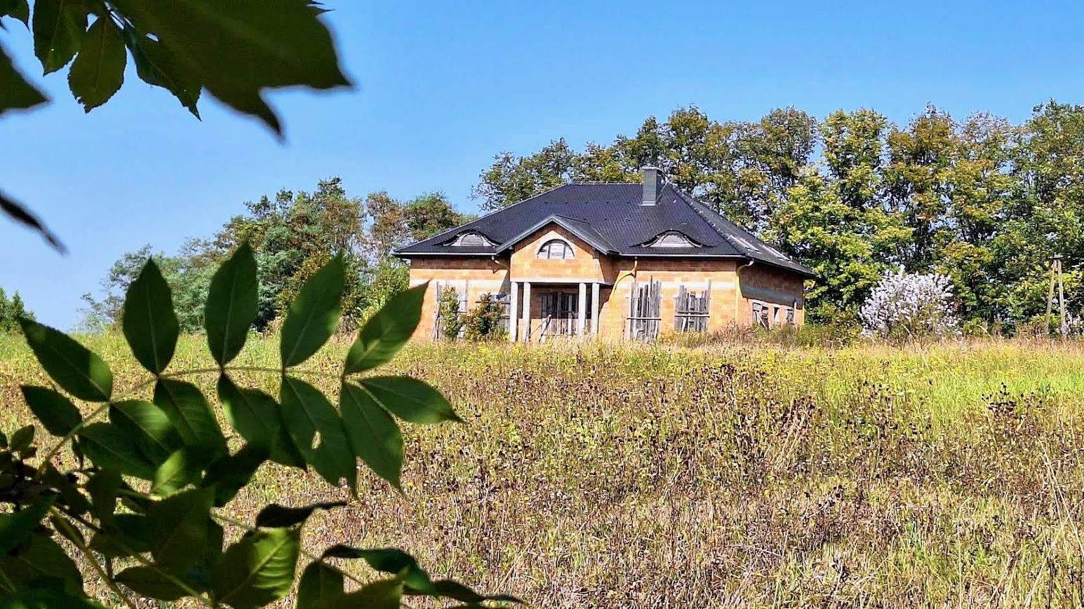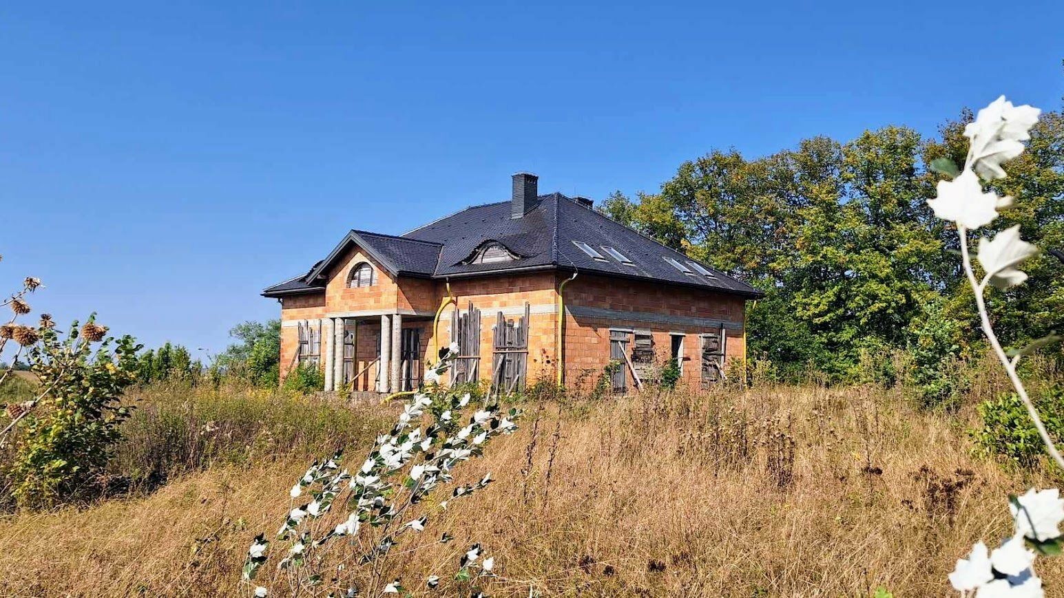 Z Domu rozpościera się panoramiczny widok na całą okolicę. Budynek znajduje się na wzniesieniu. Dom o powierzchni użytkowej 600m2 znajduje się na dużej działce 1,5 ha. Działka podzielona jest na pięć części. Każda z nich posiada drogę dojazdową. Można korzystać z niej w całości lub część obszaru wydzierżawić/sprzedać. Dom przygotowany jest do wykończenia i własnej aranżacji (stan surowy otwarty). Materiał ścian: pustak ceramiczny, na dachu dachówka.