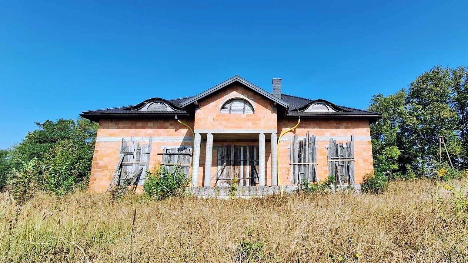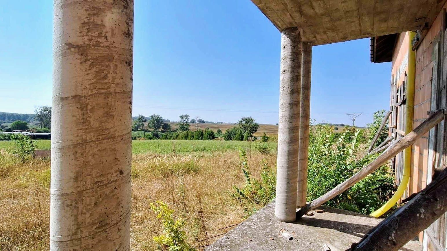 Z Domu rozpościera się panoramiczny widok na całą okolicę. Budynek znajduje się na wzniesieniu. Dom o powierzchni użytkowej 600m2 znajduje się na dużej działce 1,5 ha. Działka podzielona jest na pięć części. Każda z nich posiada drogę dojazdową. Można korzystać z niej w całości lub część obszaru wydzierżawić/sprzedać. Dom przygotowany jest do wykończenia i własnej aranżacji (stan surowy otwarty). Materiał ścian: pustak ceramiczny, na dachu dachówka.